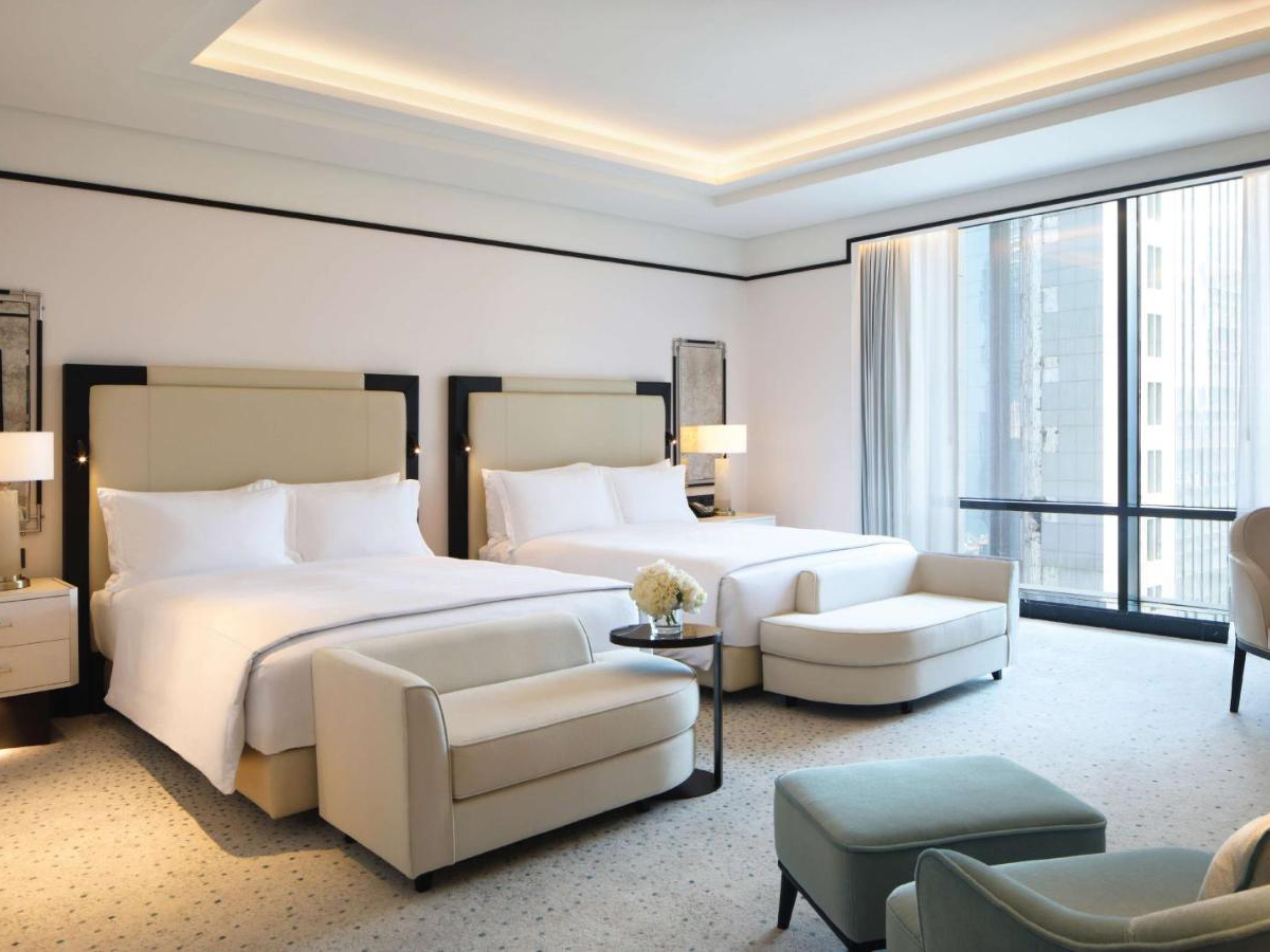 Situated on a high floor, the suite boasts two bedrooms consisting of one king bedroom and one bedroom with two queen-sized beds each with its own spacious bathroom. Arrive in the main foyer to then relax in the lavish living room and enjoy private dining from the separate