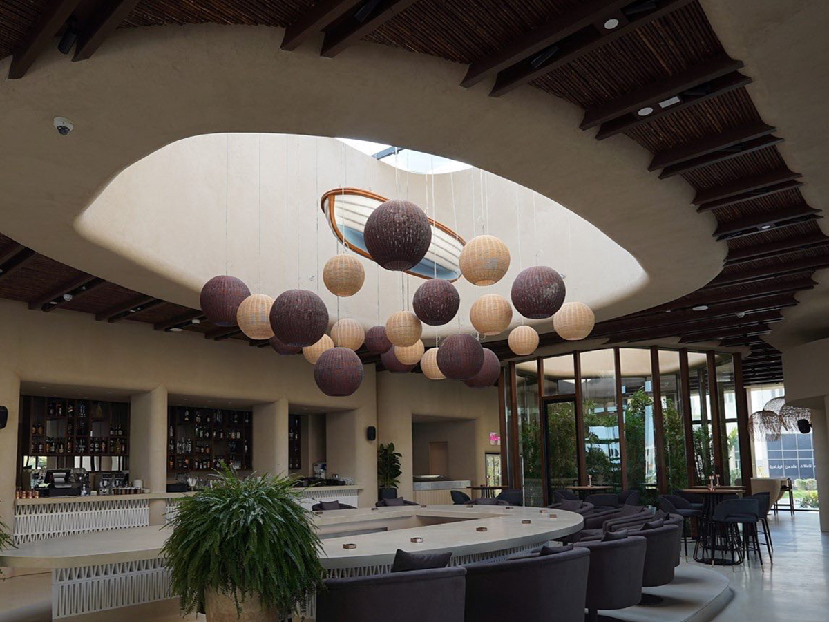 Located on the glistening Persian Gulf coastline inside the new Waldorf Astoria Lusail in Qatar’s Entertainment City, SUSHISAMBA Doha features the brand’s signature restaurant and the first Beach Club. Transporting the guest to a dream-like escape, the venue is a spectacle of light with an incredible day-to-night transformation. The tree-like, three-dimensional perforated walls and ceiling petals immerse guests throughout the space with theatrical patterns, while the custom Brazilian-inspired terrazzo flooring anchors the space.