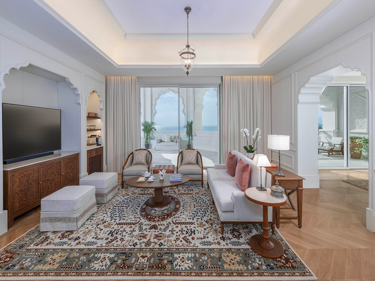 Living and dining rooms as well as all five generous bedrooms have been thoughtfully finished with princely textiles and richly appointed design details blending Mughal and Ottoman heritage. Reach ultimate bliss in the private spa with its two cushioned treatment beds.