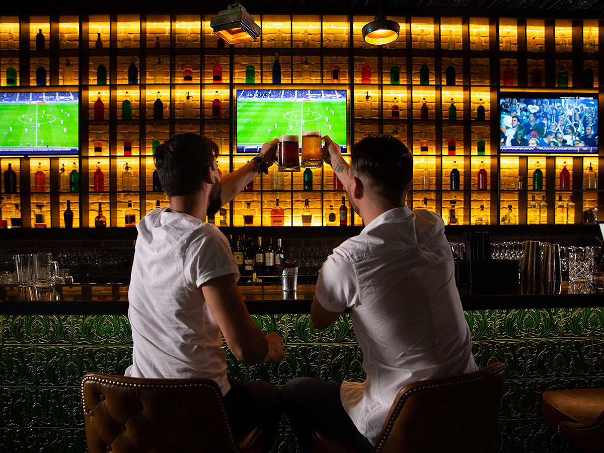 Surrounded by brick walls, wooden surfaces and vintage lighting, enjoy some drinks around the emerald green bar or choose a booth to enjoy hand-crafted burgers and catch up on live sports.